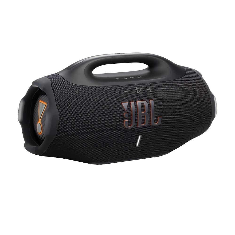 Som imbatível durante todo o diaAumentamos o volume do nosso jeito, em qualquer lugar. O novíssimo JBL Boombox 4 é maior, mais arrojado e melhor do que nunca, com o potente som JBL Pro que permanece alto e claro, com graves profundos e estrondosos. O AI Sound Boost analisa nossa música em tempo real e ajusta o som para nos dar mais potência com menos distorção, mesmo quando aumentamos o volume. Ele vem com dois woofers maiores, dois tweeters e três radiadores passivos, para que cada faixa tenha mais força e soe mais limpa. Quando quisermos ajustar a vibração, basta alternar entre as configurações de reforço de graves profundos ou vibrantes para combinar com nosso humor. Demos ao design clássico do Boombox uma nova atualização, ele é maior, mas mais leve, para que possamos levá-lo aonde quer que a festa vá: à praia, ao quarteirão ou ao quintal. É IP68 à prova d'água e poeira, portanto, o clima nunca é um obstáculo. E, com até 34 horas de reprodução (graças ao Playtime Boost), estamos prontos para longas jornadas. Com o JBL Boombox 4, levamos o clima e a energia para onde quer que vamos.Especificações Gerais- Potência de Saída (W RMS): (AC mode) - 2 x 65W RMS Woofer, 2 x 40W RMS Tweeter; (Battery mode) - 2 60W RMS Woofer, 2 x 40W RMS TweeterEspecificações de Áudio- Resposta de Frequência Dinâmica: 37Hz - 20 kHzDimensões- Peso (kg): 5.89- Altura do Produto (cm): 51- Largura do Produto (cm): 26- Comp. do Produto (cm): 21Especificações de Controle e Conexão- Perfis bluetooth: A2DP 1.4, AVRCP 1.6- Faixa de frequência do emissor bluetooth: 2.4 GHz - 2.4835 GHz- GFSK de modulação do emissor bluetooth: GFSK, p/4 DQPSK, 8DPSK- Potência de emissão de bluetooth: = 14dBm (EIRP)- Versão do Bluetooth: 5.4Bateria- Tempo de carregamento (hrs): 3- Tempo máximo de reprodução de música (hrs): 28Características- AC power cable (type varies by regions): Sim- AI Sound Boost: Sim- Bluetooth: Sim- JBL PartyBoost: Sim- Power bank: Sim- Supports Auracast: Sim- À prova de respingos d’água: Sim- Wireless: Sim- À Prova de Poeira: Sim- Classificação IPX: IP68Materiais e Acessórios Inclusos na Embalagem1 x JBL Boombox 41 x JBL cabo de energia AC (o plugue AC )1 x Guia de Início Rápido1 x Cartão de Garantia1 x Ficha de Segurança