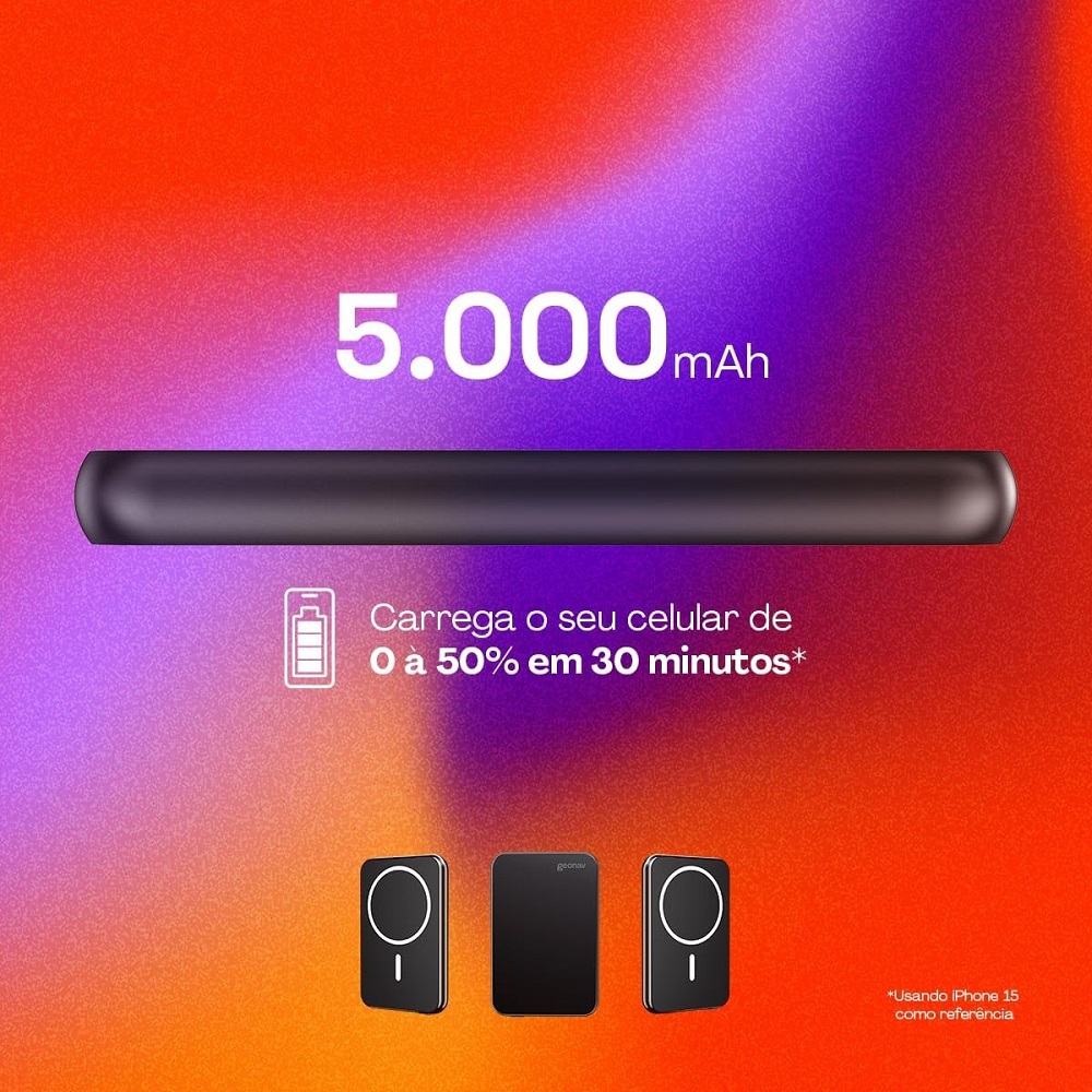 Com um design super compacto e leve, este powerbank de 5000 mAh é extremamente portátil, tornando-se essencial para suas aventuras diárias. O acabamento em alumínio oferece durabilidade e uma sensação premium ao toque, como também assegura um desempenho estável e seguro, graças à sua capacidade de dissipar o calor de forma eficiente. Uma característica impressionante deste powerbank é sua base de carregamento por indução e ímã para os iPhones compatíveis com MagSafe, podendo ser facilmente fixados ao powerbank e o carregamento sem a necessidade de conectar cabos. Para situações que exigem um carregamento urgente e rápido, o powerbank conta com uma saída USB do tipo C de 20W (Power Delivery), permitindo que você conecte cabos diretamente para carregar seu dispositivo.EspecificaçõesTensão de entrada: 5V a 9VCorrente de entrada: Até 3A (Depende da tensão aplicada)Tensão de saída: Até 12VCorrente de saída: Até 3A (Depende da tensão aplicada)Potência de saída :- Até 20W na porta PD (Power Delivery)- Até 15W para Android (por indução padrão Qi)- Até 7,5W para iPhone (por indução padrão Qi)Descrição de saída: - Descrição da Saída USB tipo C: : 5V/3A (15W) ou 9V/2A (18W)- Descrição do carregamento por indução: Potência de carregamento: 7,5W (iPhone) / 15W (Android)Temperatura de armazenamento: -20 a 45 ¿Número de portas: 1 USB tipo C - Entrada / Saída Tipo de conector de saída: USB-CTipo de conector de entrada: USB-CIndicador de bateria: 4 indicadores LED + 1 indicador de estado de carregamentoNúmero de baterias: 1 bateriaTipo de bateria: Bateria de polímero de lítioCapacidade da bateria: 5000 mAh