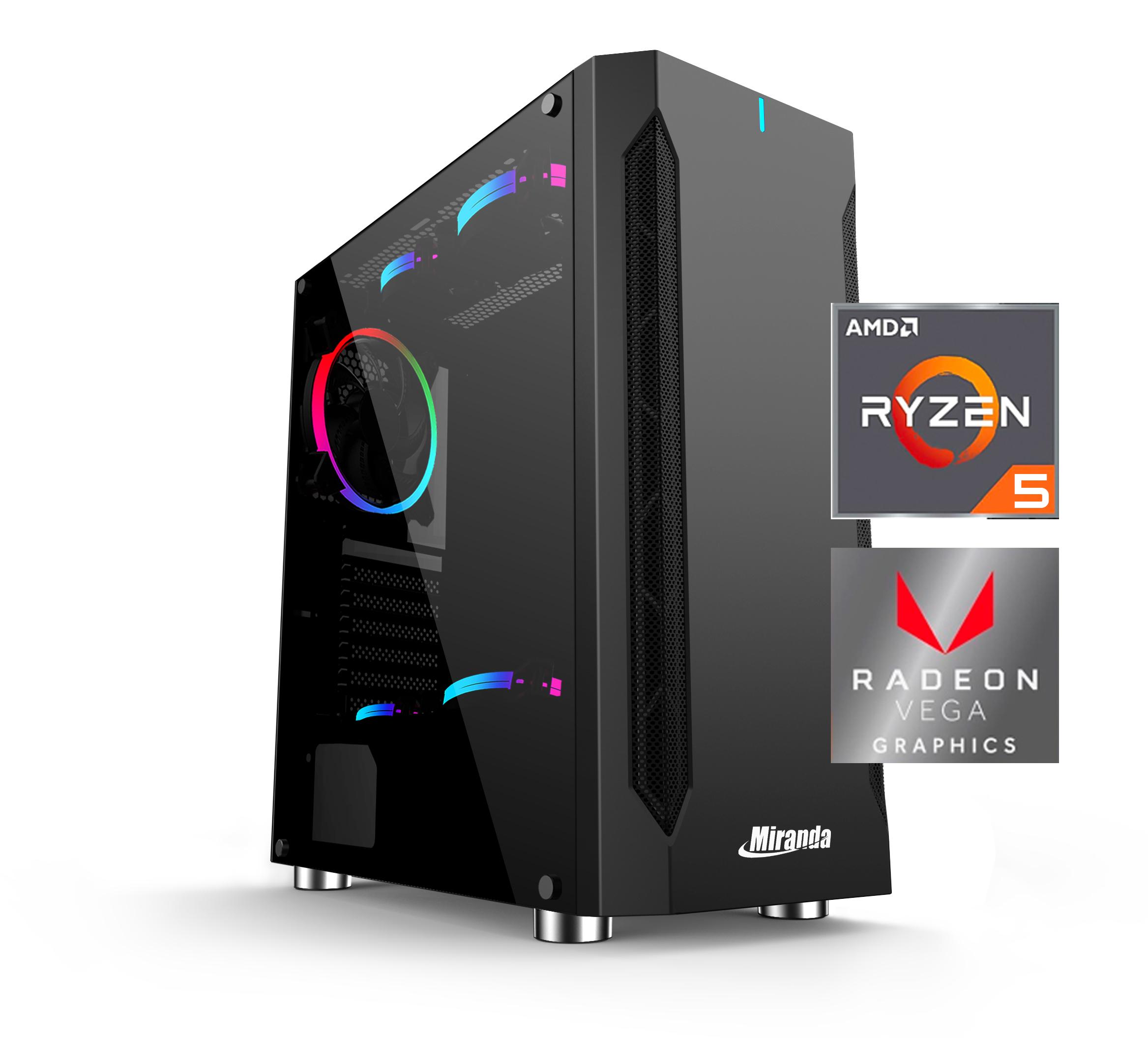 Computador Miranda Gamer Ryzen 5 5600GT, Memória 32GB DDR4, SSD 512GB NVMe, Fonte 500W 80 Plus, Preto, Linux, LOGIN