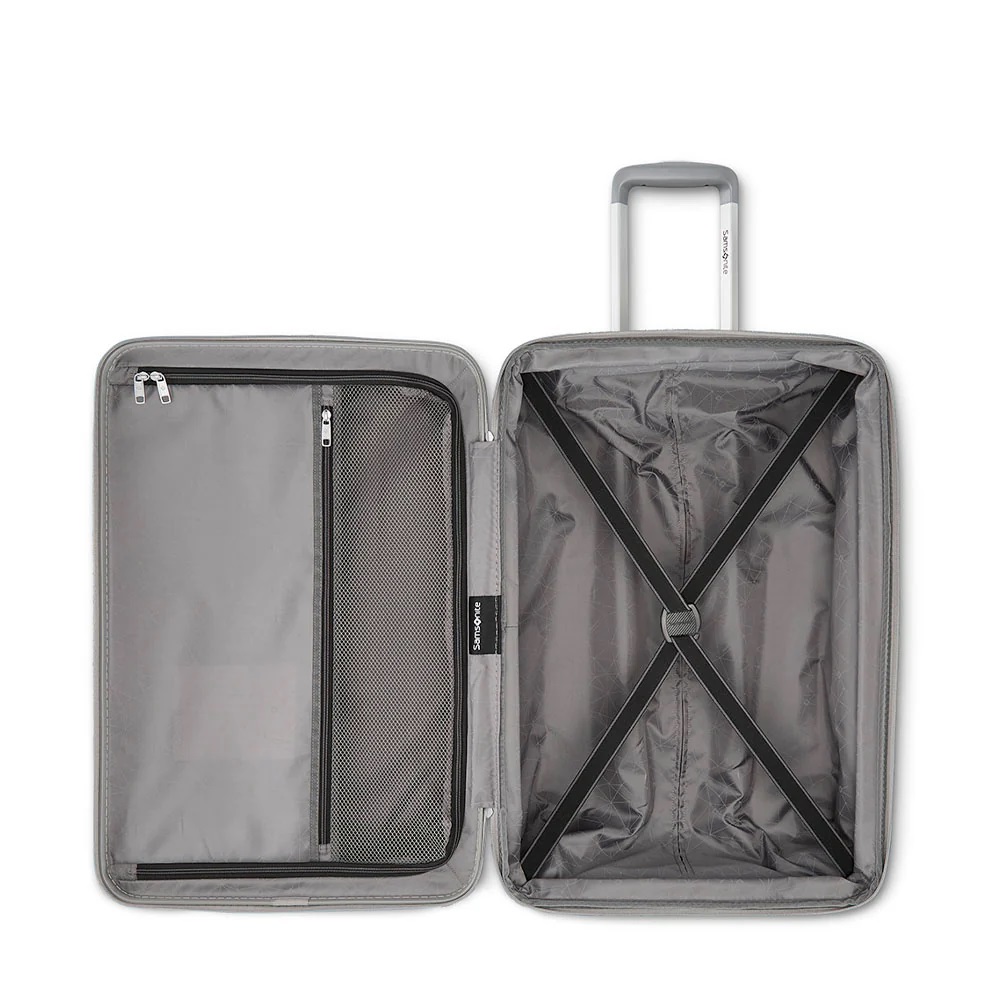 Apresentamos a mala de viagem Quartz pequena TCS, a companheira perfeita para as suas viagens!Com seu design moderno e formato expansível, essa Samsonite proporciona um toque extra de estilo e conforto a cada jornada.- Cintas cruzadas- Painel divisor- Bolso interno- Sistema de 4 rodas duplas 360º- EazyHook para pendurar objetos, como bolsas, mochilas ou roupas.Torne suas experiências ainda mais inesquecíveis já!CarateristicasExterior: • Sistema de 4 rodas duplas 360º • Expansível • EazyHook • Cadeado TSA integradoInterior: • Cintas cruzadas • Painel divisor • Bolso interno • Material interno recicladoTamanho: PequenaCor: PrataMaterial: PolicarbonatoColeção: QuartzRodas: DuplasAltura (cm): 55,00Largura (cm): 35,00Profundidade (cm): 25,00Peso (kg): 2,8Capacidade Total: 40 Litros
