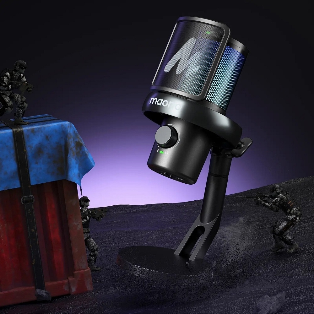 Características:- Microfone Maono condensador ideal para youtubers, criadores de conteúdo e streamers- Acompanha suporte de mesa com shock mount para isolar o microfone de vibrações- Iluminação RGB com 16 milhões de cores trazendo mais brilho para seu setup- Conector de 3.5 mm para monitoramento sem latência com fones de ouvido- Compatível com o software Maono Link para ajustes de equalização, cancelamento de ruído, ganho e iluminação RGB.- Roda de volume e botão touch capacitivo para silenciar o microfone integrados habilitando ajustes rápidos e práticosEspecificações:Tamanho da cápsula: 16 mmTaxa de amostragem: 48 kHzProfundidade de bits: 24 bitBateria: 2600 mAhDurabilidade da bateria: Aproximadamente 75 horasNíveis de cancelamento de ruído: 3 pré configurados + 1 personalizávelCores da iluminação RGB: 16 milhõesFiltros de voz por IA: 10Compatibilidade: PC, MacOS e dispositivos mobileConectividade: USB Tipo-C, USB 2.4GHzMonitoramento: 1x 3.5 mm fone de ouvidoConteúdos da embalagem: 1x Microfone DM40 Pro S, 1x Receptor USB Tipo-C, 1x Adaptador USB Tipo-A para USB Tipo-C, 1x Cabo USB Tipo-C, 1Peso Bruto: 563 gPeso Líquido:521 gDimensões da embalagem: 120 x 240 x 150 mm