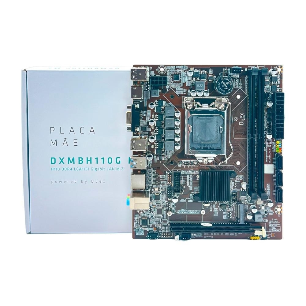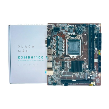 A Placa Mãe DXMBH110G M2, com chipset Intel H110 e suporte para processadores Intel LGA1151 i3/i5/i7, oferece até 32GB de memória DDR4 2133MHz. Possui slot M.2 NVMe, 3 portas SATA 6Gb/s, LAN Gigabit e áudio HD 6 canais. Formato Micro ATX com diversas opções de conectividade traseira.Especificações:- CPU: Suporte para processadores Intel de 7ª / 6ª Geração Core i7, Core i5 e Core i3 / Pentium e Celeron series no socket LGA1151- Chipset: Intel H110- Memória: 2 x sockets DIMM DDR4 2133 MHz, Máximo 32GB Arquitetura de memória de canal duplo- Processador Gráfico Integrado - Suporte Intel HD Graphics: 1 x D-Sub (VGA) 1 x HDMI- Áudio: CODEC Realtek ALC662, 6 canais de alta definição- LAN: Realtek 10/100/1000- Slots de Expansão: 1 x PCIe 3.0 x16- Armazenamento: 3 x SATA 6Gb/s 1 x Slot M.2 NVME- Portas USB: 4 USB 2.0 2 USB 3.0- Painel Traseiro: 1 x VGA (D-Sub) 1 x HDMI 1 x RJ45 4 x USB 2.0 2 x USB 3.0 3 jacks para áudio- Arquitetura: Formato Micro-ATX, 19 x 17 cm- Garantia de 1 ano direto na Miranda